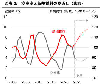 新規賃料は、空室率の低下や企業の増益見通しから、上昇が続く見通し。短期的には需給バランスの改善で上昇を後押しし、中期的にも企業収益の改善が支える。経済の見通しについては、米国の関税引き上げによる影響で一部下方修正されたものの、景気回復の流れが維持されるとした。
