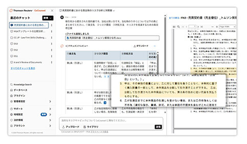 トムソン・ロイター(日本法人、東京都港区、三浦健人社長)は、法務専門家向けに特化した生成AI「CoCounsel(コ・カウンセル)」の日本語対応版の提供を始めた。コ・カウンセルは法務分野に特化したAIとして海外では既にサービスの提供が進んでいて、今回のローカライズによって日本の法律実務向けに本格的な展開を開始する。同社はオンラインによる法務関連の情報提供サービス「ウエストロージャパン」などを通じ、日本国内では既に6200の法律事務所との取引実績がある。
