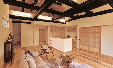 受賞したのは、新潟県阿賀町で約160年にわたり住まいを支えてきた古材をリビングの大梁に用いて耐震、断熱・省エネ性能に優れた常設の平屋モデルハウス。所在地は小田急小田原線開成駅から徒歩12分。土地面積は245m2で建物面積は130m2、間取りは2LDK。共同受賞者はロックフィールズと全国古民家再生協会。