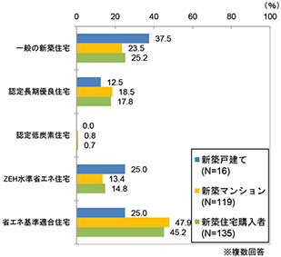 質の面では「間取り」「広さ」が上位を占め、30代では「住宅のデザイン」、60代では「災害に関する安全性」や「バリアフリーへの対応」を重視する傾向があった。住宅購入時に自然災害リスクを考慮した世帯は約9割に上り、「水害マップ」や「地震マップ」を確認した割合が高い。