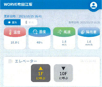 長谷工コーポレーションは、東芝エレベータと同社の居住者向けアプリ「まいりむ」からエレベーターを呼び出すことができる新機能を共同開発し、長谷工不動産が事業主のハイブリッドマンション「WORVE吹田江坂」(大阪府吹田市、10階建て全51戸、25年10月入居開始)に長谷工グループとして初めて導入した。