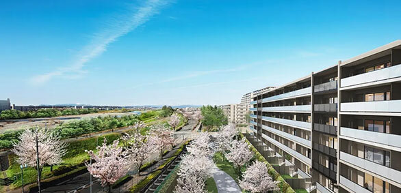 4棟1217戸、施設を充実/積水ハなどが参画、敷地内に桜スポットも/多摩川住宅二棟団地マンション建替組合