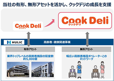 ヒューリックは、高齢者・健康分野に参画し、社会的ニーズの高い高齢者施設への投資を中心に、現在では業界トップクラスの約5000室を展開。幅広い高齢者施設のオペレーターとのネットワークも保有し、これらの資産を生かすことでクックデリの成長を支援できるとしている。