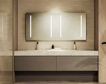 ジェルモーリオではキッチンと洗面化粧台を紹介し、セパレートやアイランドを含む3タイプを用意。洗面化粧台の2ボール仕様は住設メーカーでも少なく、提案の機会が増えているという。