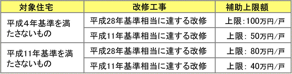既存賃貸集合住宅では、省エネ化支援事業として従来型給湯器から一定の基準を満たすエコジョーズまたはエコフィールに取り替える場合、追い焚き機能なしは1台5万円、追い焚き機能ありは1台7万円を補助し、工事内容に応じた追加補助も予定する。みらいエコ住宅2026事業による開口部や躯体等の省エネ改修支援では、住宅の省エネ性能の向上度合いに応じて1戸当たり上限100万円、80万円、50万円、40万円の区分を設ける。