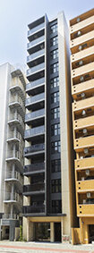 194m2の敷地に鉄筋コンクリート造地上13階地下1階建て、延べ床面積は1523m2。総戸数は24戸で専有面積は44m2と50m2を用意した。間取りは1LDK+納戸と2LDK。