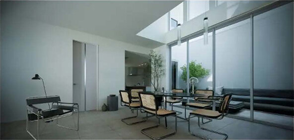 なお、北向きの大開口では、南向きの開口でカーテン併用した場合と、同等の健康的な明るさを十分得られるというシミュレーション結果も出ている。