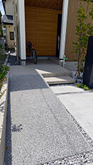 今回は、第1弾の「練馬光が丘(全34棟、21年分譲)」の居住者へのヒアリングを行い改善した。モビリティのスムーズな出し入れのため、玄関までのアプローチに設けるスロープ幅を60センチから1メートル以上へと広げ、スリップ防止のため仕上げを打ち放しから洗い出しへ変更した。